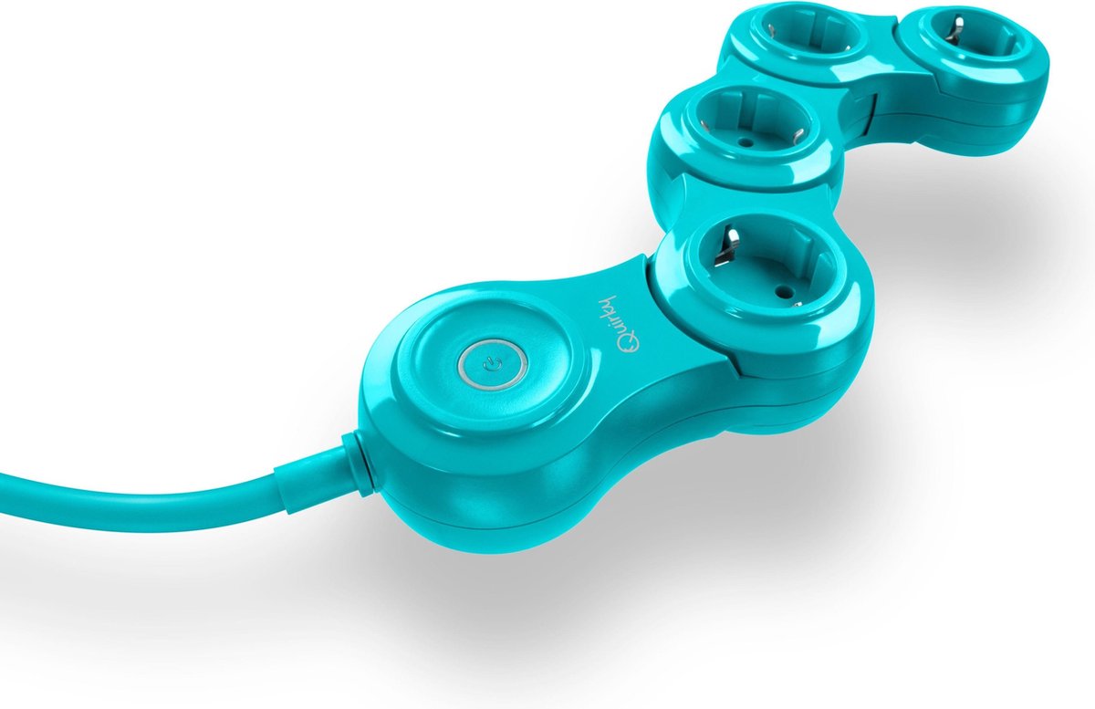 De Quirky Pivot Power Pop Stekkerdoos is een 4-voudige flexibele stekkerdoos met schakelaar en overspanningsbeveiliging. Dankzij het slimme draaibare ontwerp buig je de stekkerdoos in iedere gewenste vorm, zodat ook grote adapters altijd naast elkaar passen.