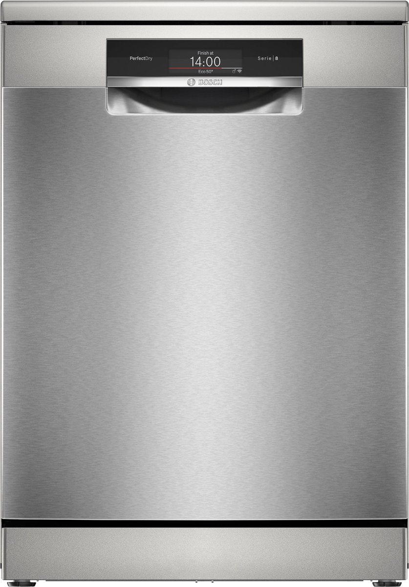 De Bosch Serie 8 SMS8TCI04E is een vrijstaande vaatwasser van 60 cm met een anti-fingerprint afwerking, energielabel A en geavanceerd energiebesparingssysteem. Hij biedt PerfectDry voor uitstekende droogresultaten, zelfs bij lastig droogbare vaat, en intelligente programma's die zich aanpassen aan je feedback. Met Max Flex Pro korven beschermt hij je servies en glaswerk.