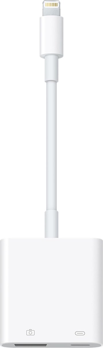 Apple MK0W2ZM/A Lightning naar USB3.0 camera adapterGebruik deze Apple Lightning naar USB3.0 Camera adapter om uw (hoge resolutie) foto- of videocamera te verbinden met uw iPhone of iPad (Mini) met Lightning aansluiting. De adapter is zeer compact en eenvoudig mee te nemen. Wanneer u de adapter aansluit start de Foto's-app automatisch. U kunt dan aangeven welke foto's u wilt importeren waarna ze netjes geordend worden in albums.Lightning voedingsaansluitingU kunt de lichtnetadapter van uw iPad Pro aansluiten op de vrouwelijke Lightningaansluiting. Door deze aan te sluiten breidt u de mogelijkheden van uw iPad Pro uit. U kunt namelijk de USB poort ook gebruiken voor een ethernet adapter, hub, kaartlezer of ander USB apparaat. Ondersteunde bestandsformatenDe Lightning naar USB3.0 camera adapter ondersteunt diverse bestandsformaten, waaronder JPEG en RAW, en ook SD- en HD-videostructuren, waaronder H.264 en MPEG-4. Ondersteunt USB3.0Indien uw iPad USB3.0 snelheden ondersteunt (o.a. 12,9 inch iPad Pro en 10,5 inch iPad Pro),gaat het overzetten razendsnel. De 9.7 inch iPad Pro en andere iPad modellen ondersteunen geen USB3.0, de maximale snelheid is dan USB2.0.BesturingssysteemDeze adapter vereist iOS 9.2 of hoger.