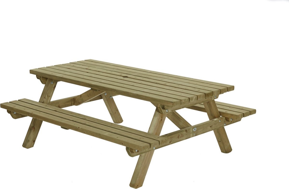 Houten picknicktafel 200x160 cmEen houten picknick tafel dat ideaal is voor groepen. Zeker 8 volwassenen kunnen aan deze Talen picknicktafel zitten. Door de hoge kwaliteit is deze picknicktafel geschikt voor langdurig en intensief gebruik. Perfect voor in de horeca, sportclubs, recreatie, maar ook voor thuis. De picknicktafel heeft het ruime formaat van 200 bij 160 cm wordt compleet gemonteerd geleverd met parasolopening.Voor de productie van deze prachtige picknicktafel is gebruik gemaakt van Noord-Europees vurenhout. Dit hout is te herkennen aan het rustige nervenstructuur en kleine gezonde noesten. Het Noord-Europees vurenhout is voorzien van het FSC-keurmerk. Zo bent u verzekerd van hoog kwalitatief hout met oog voor het milieu. De picknicktafel heeft een stevige constructie, waarbij alles vanaf de onderzijde dubbel wordt geschroefd. Het hout is geschaafd en alle uiteinden zijn geschuurd, zodat u geen last krijgt van splinters. Formaat: 200x160x76 cm Bladformaat: 200×85 cm Dikte van de planken: 45 mm Geschikt voor 8 volwassenen Vurenhout met FSC-keurmerk