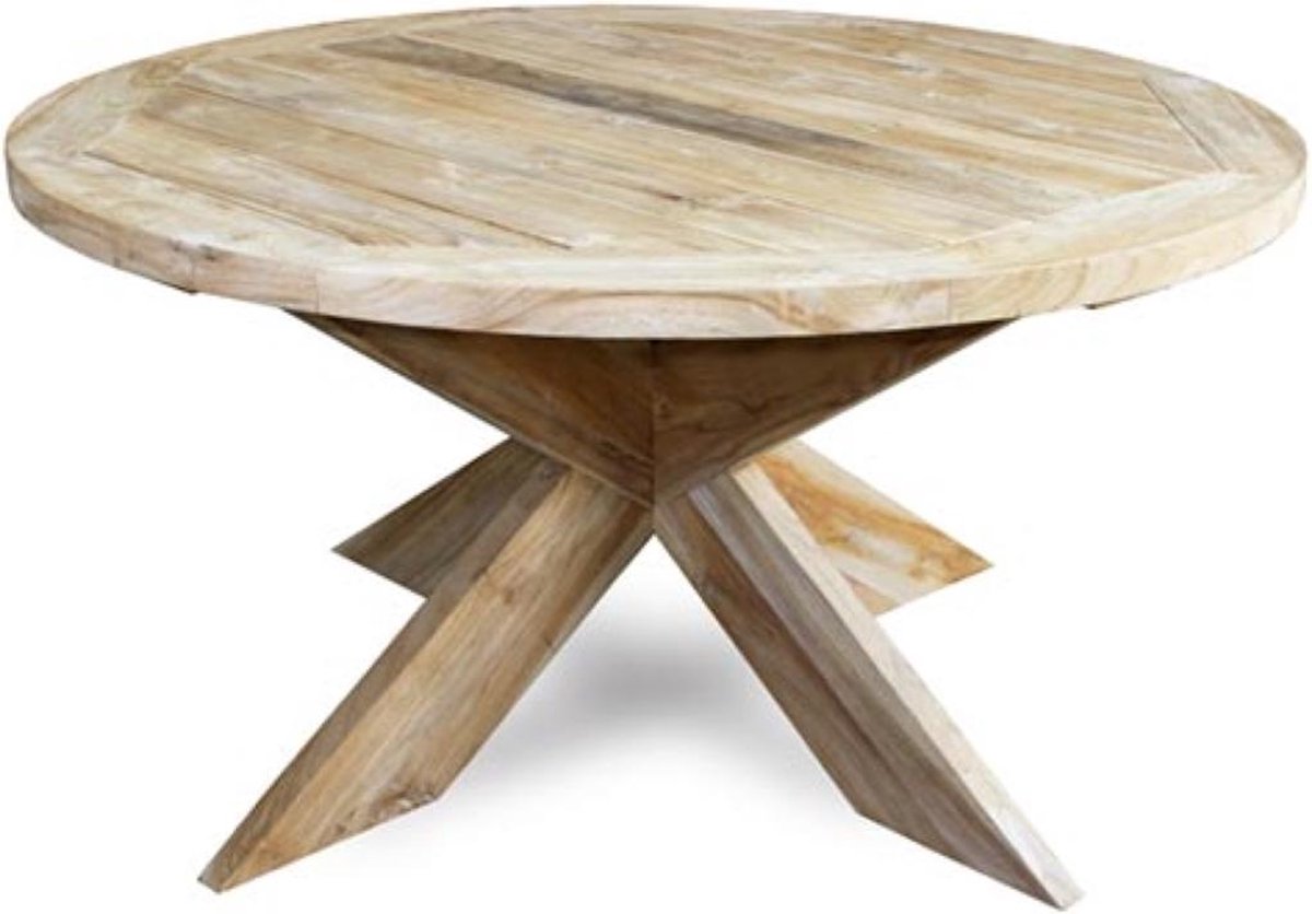 Gezellige, ronde tuintafel van teakhout De Tuintafel Teak Ø150 van Van der Leeden is uitstekend te combineren met veel verschillende soorten tuinstoelen. Wat uw stijl ook is, met deze ronde, teakhouten tuintafel creëert u een gezellige tuinset waaraan u zomers heerlijk kunt tafelen. Deze teaktafel is voorzien van een kruispoot en heeft een frisse, lichte kleur.Bij gebruik van een hoes over de tafel (niet inbegrepen): Zorg ervo... lees meer over dit product