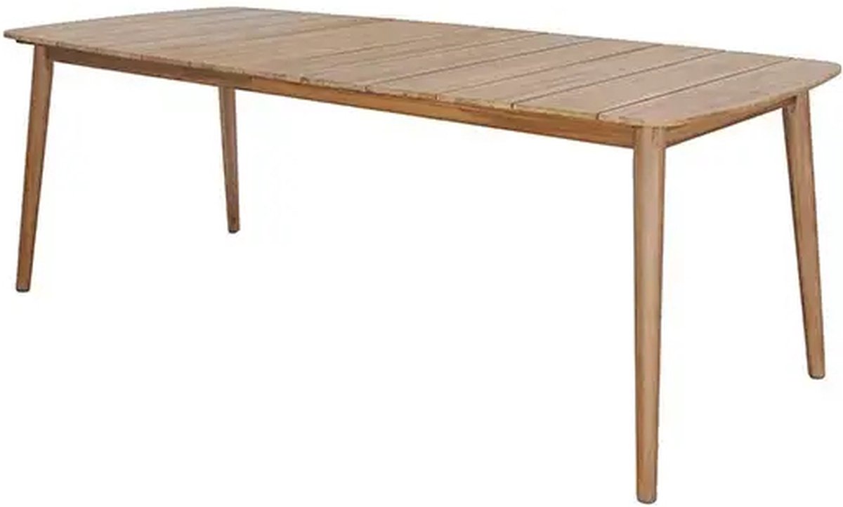 De Bella Tuintafel 215x90/100 cm is uitstekend te combineren met veel verschillende soorten tuinstoelen. Wat jouw stijl ook is, met deze houten tuintafel creëer je een gezellige tuinset waaraan je zomers heerlijk kunt tafelen. De afgeronde hoeken geven de tuintafel een unieke uitstraling.De tuintafel is gemaakt van acacia hout en heeft een natuurlijke look.Bij gebruik van een hoes over de tafel (niet inbegrepen): Zorg ervoor dat er geen plasvorming kan ontstaan op de hoes. Plaats een vorstbestendige bloempot omgekeerd in het middel van het tafelblad, onder de hoes, zodat regenwater van de hoes af glijdt en er altijd ventilatie is onder de hoes. Anders kan het overmatige vocht de tafel beschadigen.ProductvoordelenStevig materiaalUitstekend te combineren