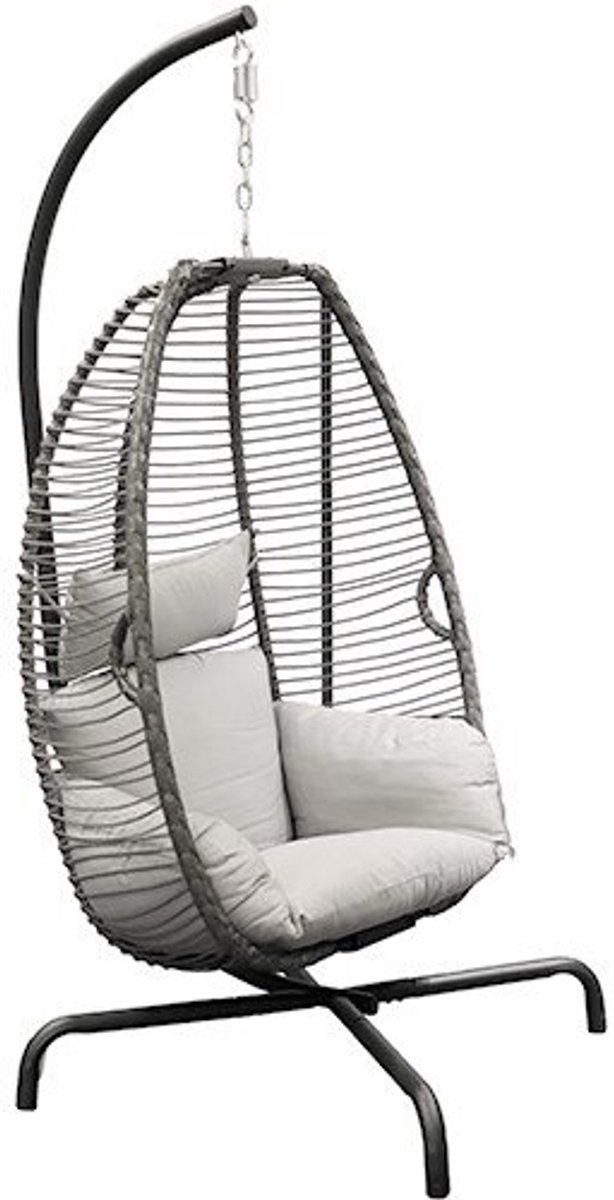 De hangstoel wordt geleverd inclusief grijze kussens van gesponnen polyestervoor optimaal zitcomfort.