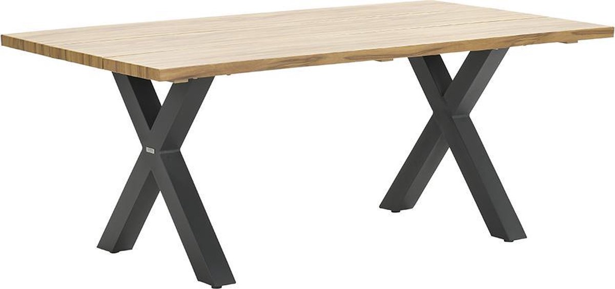 Garden Impressions Zeus dining tafel 180x100 carbon black/teak look/X-stijl - - Zwart
