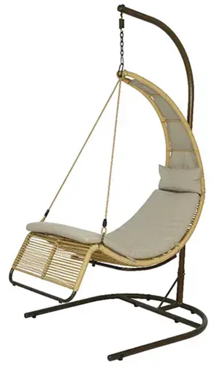 De Koloa hangstoel is een comfortabele en stevige hangstoel voor binnen of buiten. De hangstoel kan ook van het frame afgehaald worden en neergezet worden als loungestoel. Het frame is gemaakt van ijzer en de zitting van kunststof wicker vlechtwerk.De hangstoel heeft een maximaal draagvermogen van 120 kg. Dankzij het comfortabele kussen is het heerlijk relaxen in deze hangstoel.Productvoordelen:Stevig materiaalInclusief loungekussenOok te gebruiken als loungestoel
