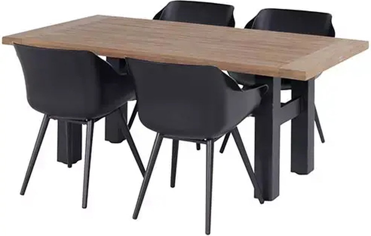 De Hartman Sophie Yasmani Diningset is een prachtige diningset met een moderne uitstraling! Deze Hartman tuinset is van hoogwaardige kwaliteit en gaat jarenlang mee.Deze Hartman diningset bestaat uit een Yasmani Tuintafel en 4 Sophie Studio Armstoelen. De stoelen hebben een frame van aluminium en een zitting van kunststof. De tafel heeft een aluminium onderstel en een tafelblad van teakhout. De gebruikte materialen zijn duurzaam, weerbestendig en onderhoudsvriendelijk. Bij gebruik van een hoes over de tafel (niet inbegrepen): Zorg ervoor dat er geen plasvorming kan ontstaan op de hoes. Plaats een vorstbestendige bloempot omgekeerd in het middel van het tafelblad, onder de hoes, zodat regenwater van de hoes af glijdt en er altijd ventilatie is onder de hoes. Anders kan het overmatige vocht de tafel beschadigen.ProductvoordelenDuurzaamUv-bestendigWeerbestendigOnderhoudsvriendelijkAfmetigen (cm)Tuintafel: L180 x B95 x H76Tuinstoel: L62 x B59 x H84Zitting: D44 x H44Armleuning: H62