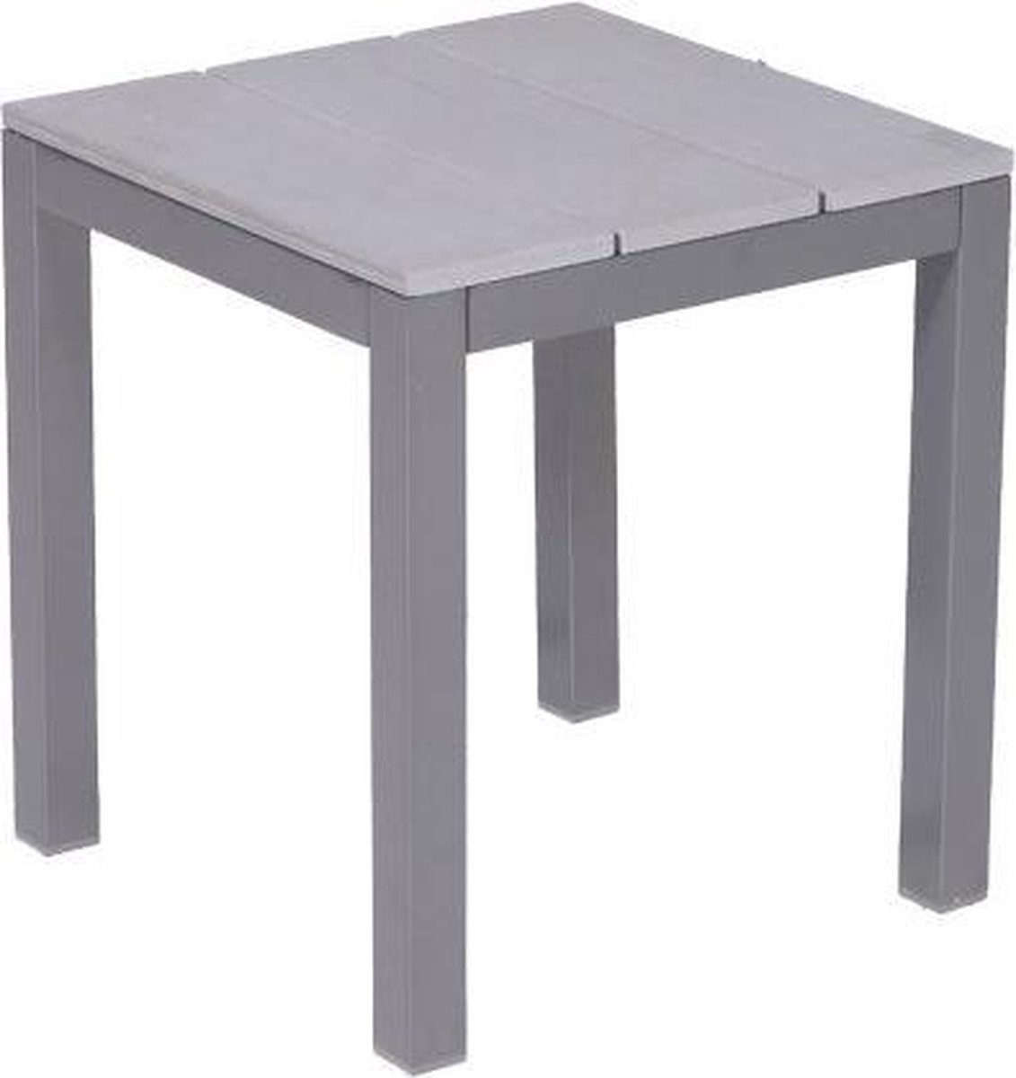 De Garden Impressions Jackson bijzettafel van 43x43xH47 cm past perfect bij 1 van de ligbedden en komt uit de Garden Impressions tuintafel collectie in het royal grey aluminium/ polywood met grijs kleurig Polywood tafelblad. Voordelen: - Onderhoudsvriendelijk - Duurzame materialen - Prachtig design Gebruik: Indoor / outdoor Details: - Afmetingen (cm): 43x43xH47 - Materiaal frame: aluminium - Materiaal: polywood - Materiaal ta... lees meer over dit product