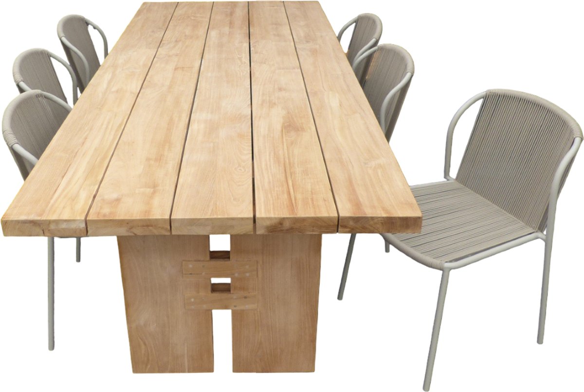 Set van Zen tafel 240x100x75 cm teak en 6 Vedella stoelen (ZA) salix Yoi - Yoi