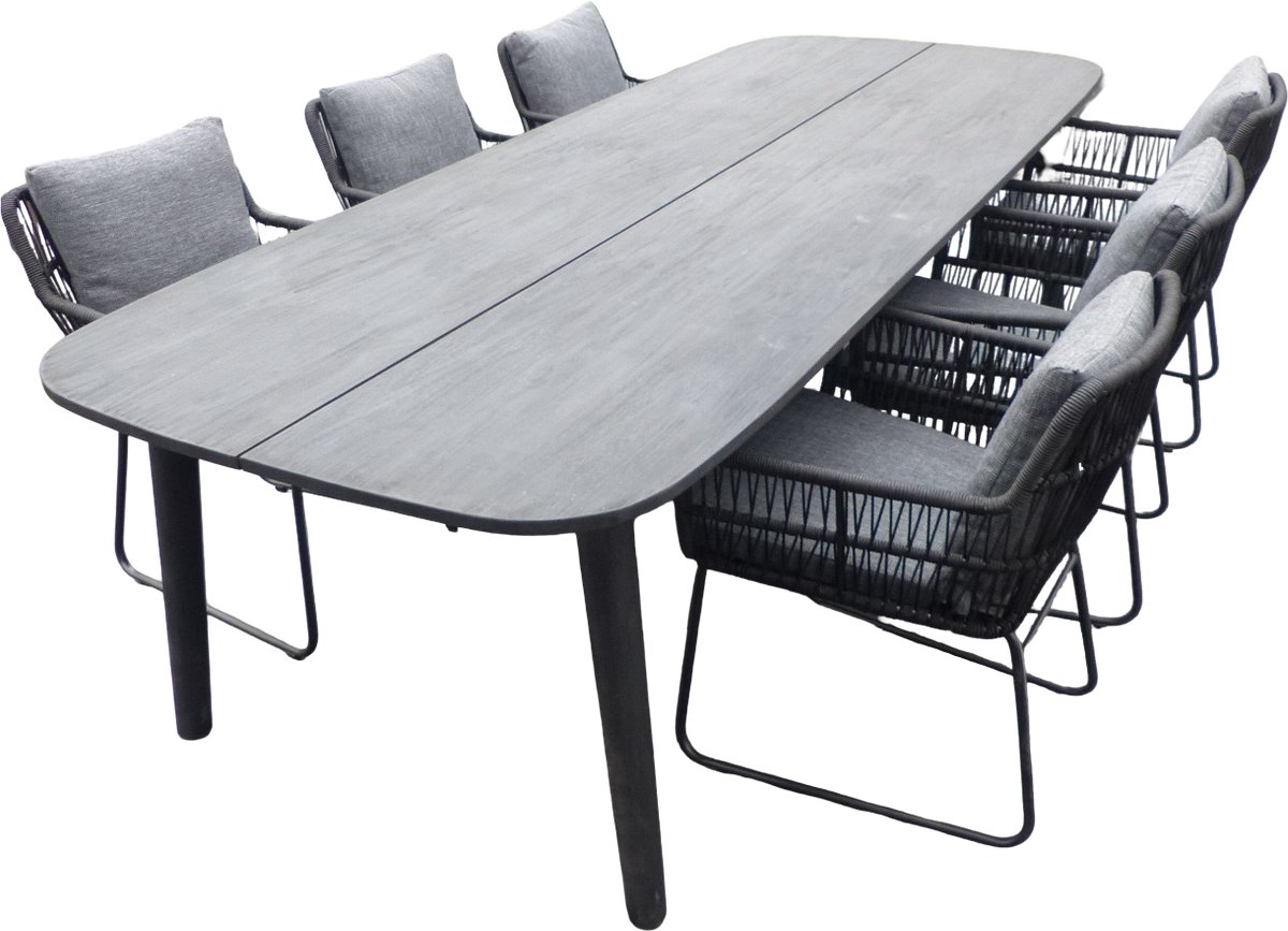 Set van Lennon tafel 280x110x76 cm charcoal en 6 Ran stoelen panther incl. kussens Yoi - Yoi