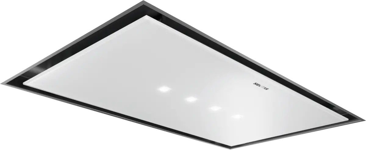 Siemens LR96CBS20, iQ500. Maximale afzuigcapaciteit: 745 m³/uur, Geluidsniveau: 61 dB. Soort: Plafond inbouw, Kleur van het product: Wit, Type lamp: LED. Breedte: 900 mm, Diepte: 500 mm, Hoogte (max): 18,9 cm lees meer over dit product