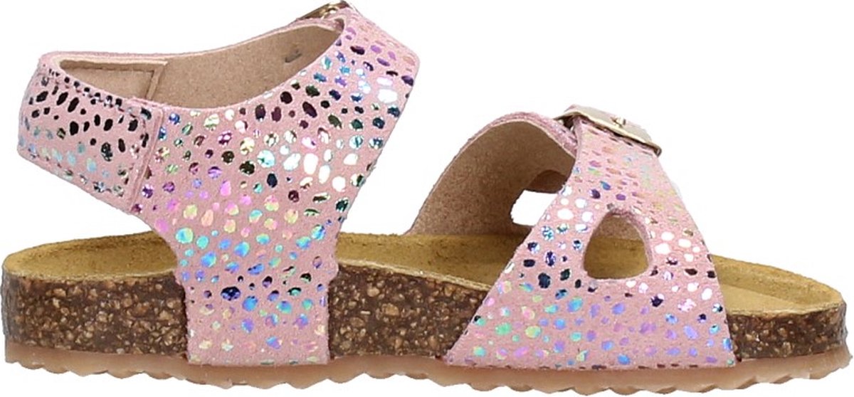 Met deze roze sandaaltjes 48308 van het merk DEVELAB ben jij helemaal klaar voor die heerlijke zonnige dagen! De buitenkant van dit sandaaltje is gemaakt van zacht suède met een glanzende folie in verschillende kleuren om deze sandaal een vrolijke boost te geven. Beide bandjes zijn voorzien van gouden gespjes, zodat je 'm perfect aanpast naar de voet. Het binnenwerk heeft een suède voering en een fijn licht voorgevormd voetbed met een suède toplaag. De kurken tussenzool zorgt voor een goede demping en de rubberen loopzool voor een goede grip. Hiermee ben jij verzekerd van urenlang comfortabel dansen, springen, rennen, huppelen, klimmen en klauteren!