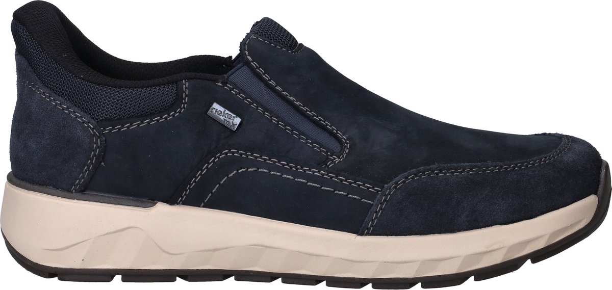 Voordelen Rieker instappers voor heren Deze comfortabele instappers van Rieker zijn de perfecte keuze voor heren die gemak willen zonder in te leveren op stijl. Dankzij de combinatie van suède en nubuck voelt de schoen zacht aan en oogt hij stoer. De donkerblauwe kleur is tijdloos en veelzijdig. Met voetbreedte H geniet je van extra ruimte en optimaal loopcomfort. Sluiting: instapmodel met elastische inzetstukken voor snel aa... lees meer over dit product
