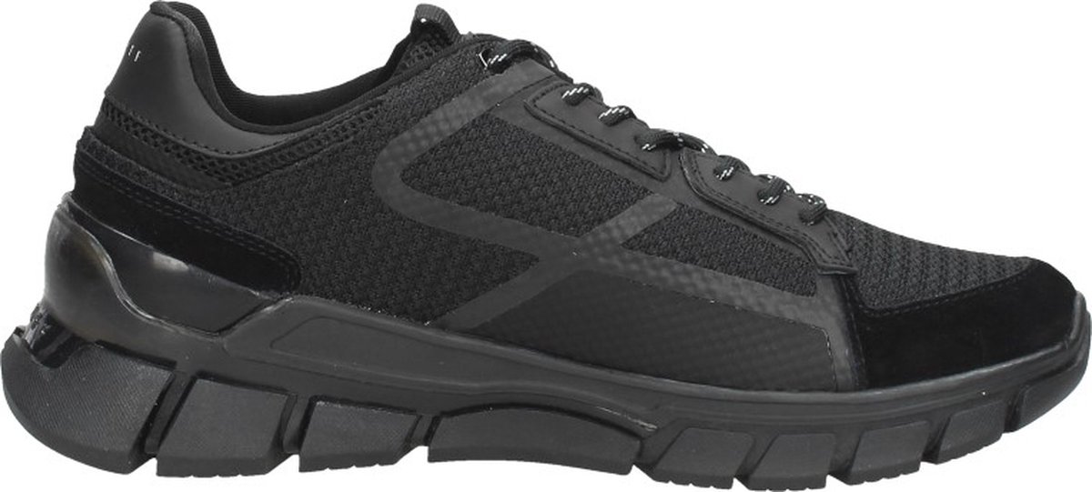 Dit is de nieuwe Todo Estrato, een veelzijdige sneaker met een eleGant, uniek uiterlijk. Dit zwarte lichtgewicht model is uit de collectie van het sportieve merk Cruyff is gemaakt van textiel in combinatie met panelen van gomma, mesh en suède en natuurlijk een opvallende chunky zool. Opvallende details zijn de merkopdrukken op de zool, zijkant en hielcap en het rubberen logo in merkreliëf op de tong en zijkant. De tong valt goed op door het mesh textiel en het aantreklusje, waarmee je de sneaker gemakkelijk aan je voet trekt. Het zwarte binnenwerk is uitgevoerd in neopreen textiel met een gevoerde enkelkraag en uitneembaar foam voetbed voor extra comfort aan je voeten. De sneaker is voorzien van een chunky zool met diepe groeven voor veel grip en een opvallende look.