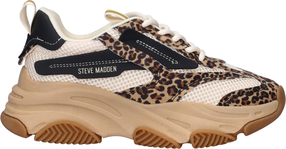 Ontdek de JPOSSESSION lage sneakers voor meisjes in een stijlvolle beige tint. Deze sneakers van STEVE MADDEN combineren comfort met een trendy uitstraling. Het bovenwerk is van beige mehs met suède panter print ovelays en zwarte accenten. Dankzij de chunky zool en ronde neus stap je moeiteloos door de dag. Het uitneembare voetbed en de textiele binnenkant zorgen voor extra draagcomfort. Perfect voor een dagje shoppen of een middagje in het park. Combineer ze met een leuke jeans of een speelse rok voor een casual look. De rubberen zool biedt grip, terwijl de vetersluiting zorgt voor een perfecte pasvorm. Voeg een vleugje stijl toe aan elke outfit met deze veelzijdige sneakers.
