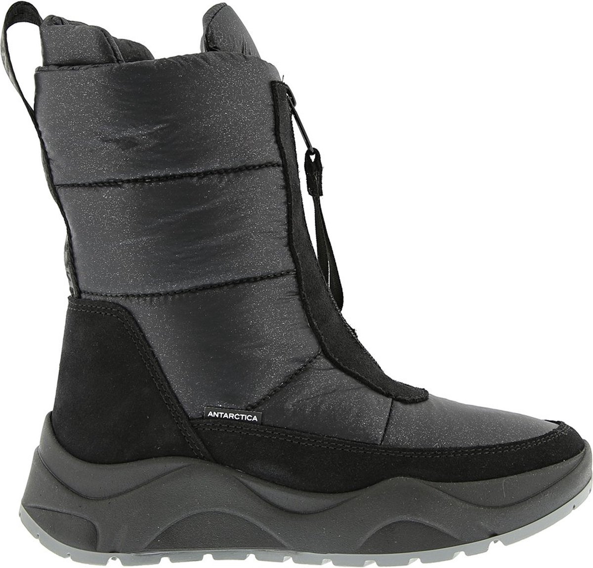 Antarctica AN 8758 zwart snowboots dames De Antarctica 8758 is een hoge snowboot voor dames met rits aan de voorkant. De snowboot heeft een suede upper met polyester en een hoge rubberen zool, de voering is van synthetisch wol. De snowboot heeft een ritssluiting en aantreklus voor makkelijke in- en uitstap. Kleur: zwartMateriaal bovenwerk: nylon, suéde