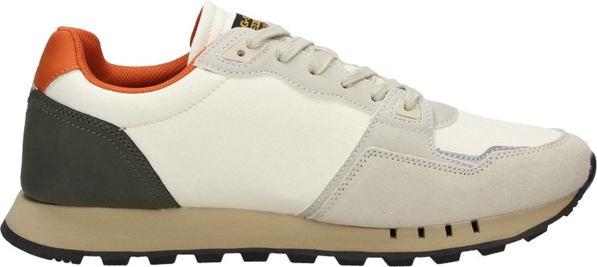 Sportieve G-star Raw sneakers voor heren in neutrale tinten met kleurrijke accenten. Deze veterschoen is gemaakt van textiel, leer en synthetisch materiaal.