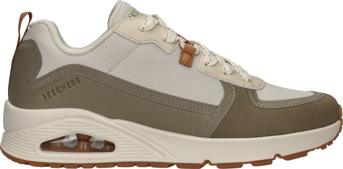 Wat een fijne Skechers Uno Layover sneaker is dit! De herensneaker heeft een mooie beige kleur met olijfgroene accenten.