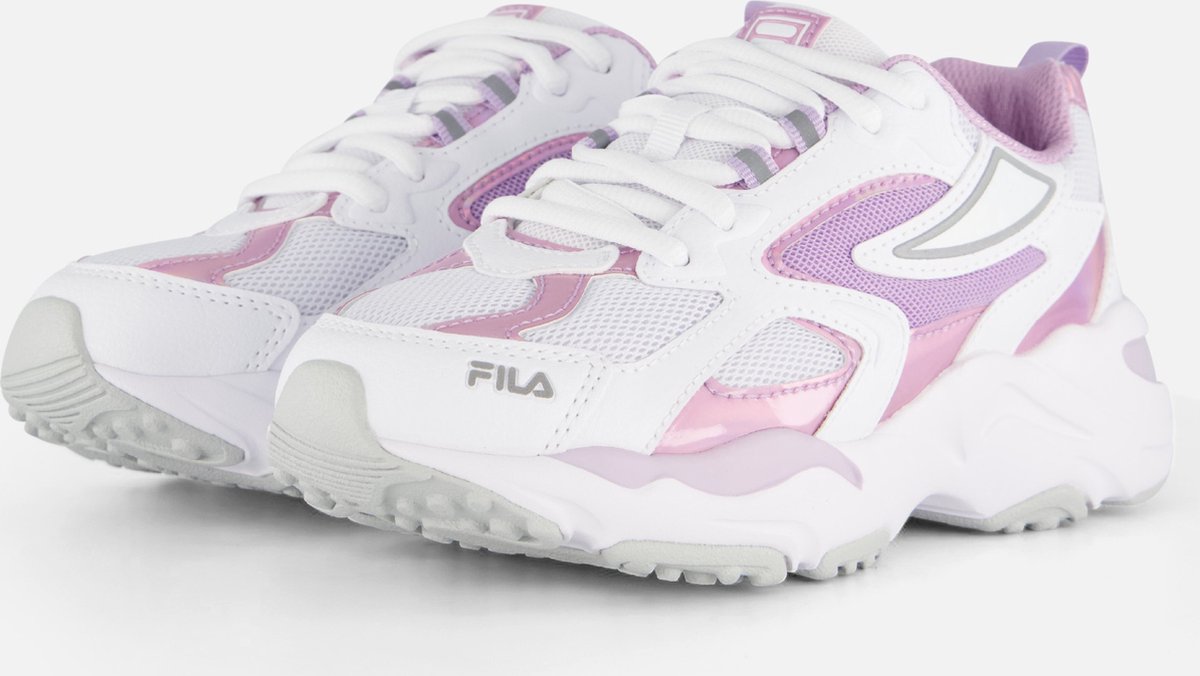 Chunky sneakers zijn dé trend van dit moment en laten jouw unieke look zien. Het merk FILA weet als geen ander hoe ze deze trend moeten benaderen en heeft deze lage sneaker RAY TRACER aan hun collectie toegevoegd. De buitenkant van dit model is gemaakt van wit mesh met sportieve panelen van leatherlook met lilakleurige accenten en een unieke afwerkingen van holographic folie. De tong is uitgevoerd in mesh en is gesierd met een... lees meer over dit product
