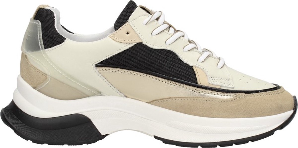 Het eigenwijze Nederlandse merk Red-Rag ontwerpt schoenen voor kinderen die weten wat ze willen en stoer en onderzoekend in het leven staan. De schoenen worden ontworpen en met de handgemaakt door vakmensen in Italië en Portugal. Met oog voor detail en gebruik van hoogwaardige materialen weten ze je keer op keer te verrassen met unieke items. Deze lage sneaker 76638 met toffe accenten is uitgevoerd in goudkleurig leer met zwart, dicht geweven textiel en diverse panelen van beige suède en off-white leer. Opvallend is de lakleren bies op het bovenwerk, de perforaties op de neus, het leren label op de tong met zilverkleurige merkinitialen en het transparante, rubberen hielstuk. Het binnenwerk heeft een voering van zacht en soepel leer met een licht gevoerde enkelkraag en een uitneembaar voetbed van leer. Het stoere plaatje wordt compleet gemaakt door de rubberen chunky zool met opvallende vormen en het zwarte accent onder de hiel. De perfecte schoen voor een trendy, casual look!