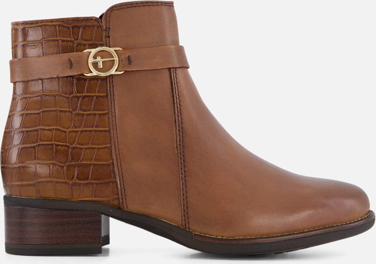 Deze Tamaris enkellaarsjes in de kleur cognac zijn gemaakt van leer. De voering en comfortabele binnenzool zijn van schapenwol. De laarsjes zijn voorzien van Anti-Shokk en een touch-it binnenzool. De antislipzool is gemaakt van rubber en heeft een dikte van 2 centimeter.