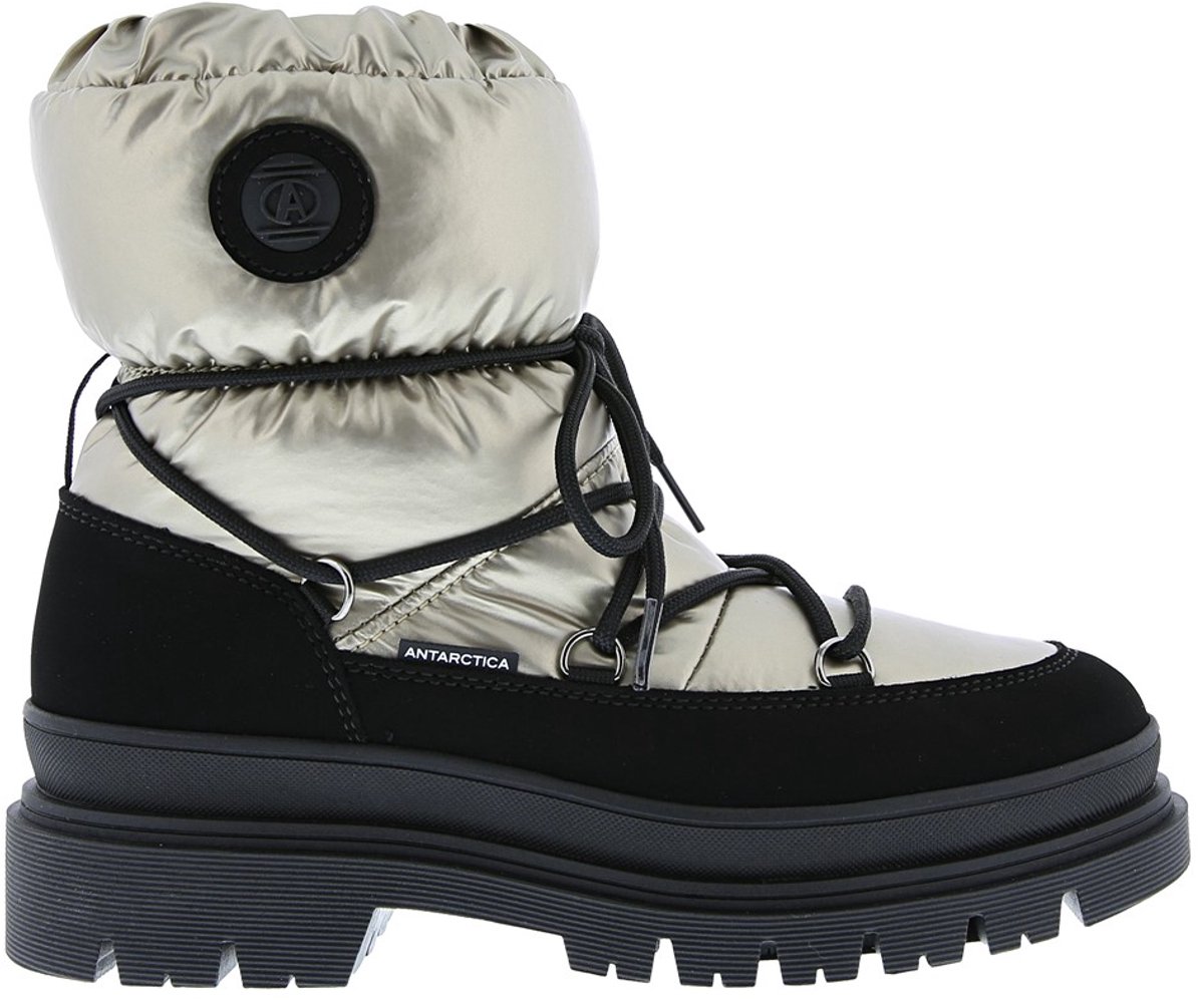 De Antarctica 8666 is een trendy snowboot voor dames, met een hoge rubberenzool. De snowboot voor dames heeft een suede upper met polyester en een handig koord om de gewenste enkelomvang te bepalen. De 8666 heeft een decoratieve boord en voering van synthetisch wol. lees meer over dit product