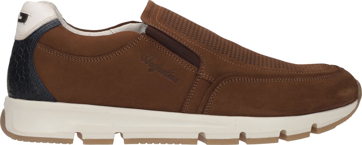 Deze sportieve Australian Eagle instappers hebben een bovenwerk van nubuck. De voering en comfortabele binnenzool zijn van leer. De instappers hebben een elastische inzet en een verharde hiel voor stevigheid tijdends het lopen. De zool is gemaakt van rubber en heeft een hakhoogte van 3 centimeter.