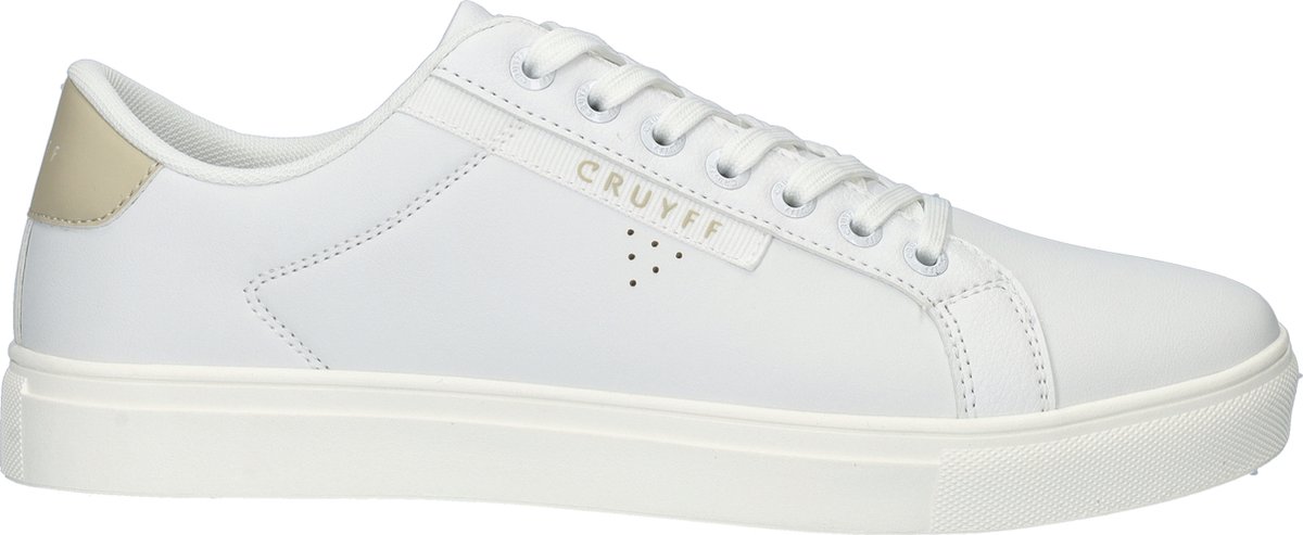 Stap in stijl met de CRUYFF IMPACT COURT lage sneakers voor heren. Deze witte sneakers zijn perfect voor een casual look met een sportieve twist. De sneaker is gemaakt van wit leatherlook. De binnenvoering is gemaakt van textiel en heeft een uitneembaar voetbed van leer. Opvallende details zijn de beige hielcap met merkreliëf die ook terug te vinden is aan de zijkant en tong. De rubberenzool met stootrand heeft een gripvast pr... lees meer over dit product