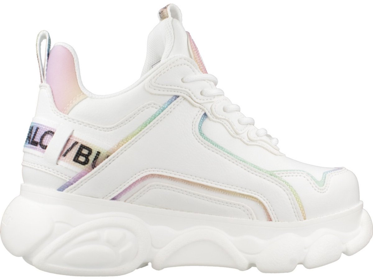 Kleur: Wit Zeemeerminnen Bovenwerk: Synthetisch leer Interieur: Stof Zool: Platform Sluiting: Veters Details: Wolkenzool, veelkleurige inzetstukken, uitneembare binnenzool Pasvorm: Normaal