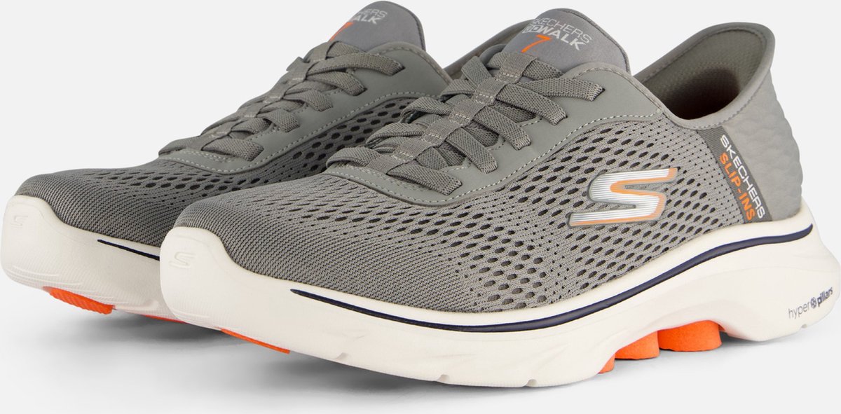 Skechers Go Walk 7 - Free Hand 2 Heren Instappers - Grijs/Oranje - Maat 41 lees meer over dit product