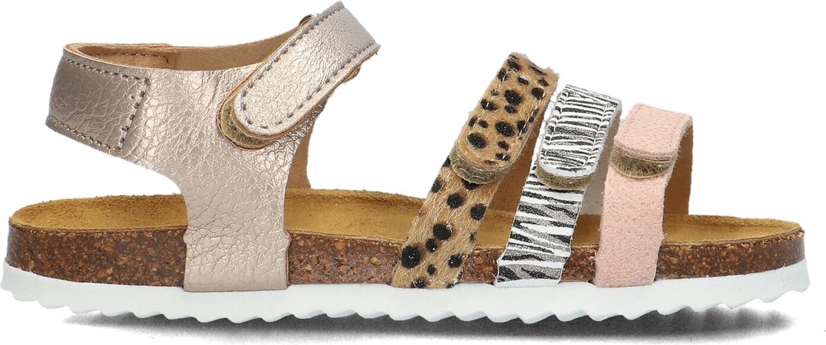 Laat je stralen met deze goudkleurige sandalen van DEVELAB! De drie bandjes bij de voorvoet zijn voorzien van bruin ponyhair, suède zebraprint en roze suède tijgerprint. Het leer aan de buitenkant en suède aan de binnenkant zorgen voor een luxe uitstraling. Perfect voor een dagje strand of een zomerse wandeling in de stad. Combineer ze met een luchtige zomerjurk of een trendy jumpsuit voor een complete look. Met deze sandalen ben jij helemaal klaar voor de zomer!