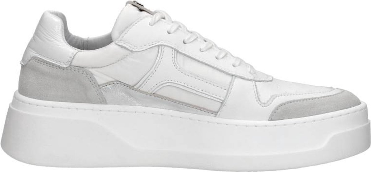 Stap in stijl met deze witte leren lage sneakers van RED-RAG. Met de 72118 ben jij klaar om de wereld te veroveren! Deze trendy schoenen zijn perfect voor dames die op zoek zijn naar comfort en fashion in één. De schoen is gemaakt van wit leer en heeft toffe overlays in beige suéde, zilverkleurig leer, wit mesh en wit glimmend leer. De binnenvoering is gemaakt van leer en heeft een zacht comfortabel voetbed. Door de vetersluiting kun je de schoen gemakkelijk naar de gewenste breedte verstellen. Door de toffe plateauzool van bijna 5 cm met gripvast profiel maakt dit de schoen super trendy! Combineer ze met een stoere jeans voor een casual look, of draag ze onder een zomerse jurk voor een trendy twist. Laat je creativiteit de vrije loop en maak elke outfit compleet met deze must-have schoenen.