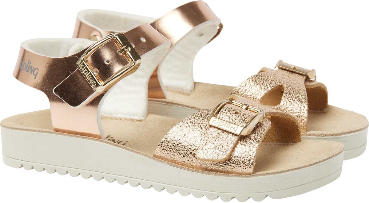 Met deze mooie sandalen voeg je net dat beetje extra bling aan de outfit van je dochter toe. De sandalen zijn beschikbaar in goud en champagne kleur.Een groot pluspunt van deze Kipling sandalen is de flexibele zool. Hierdoor zitten ze heel fijn en kan je kind ze met gemak de hele dag dragen. Dankzij de dubbele gespsluiting pas je ze eenvoudig aan op de voet van je kind. lees meer over dit product