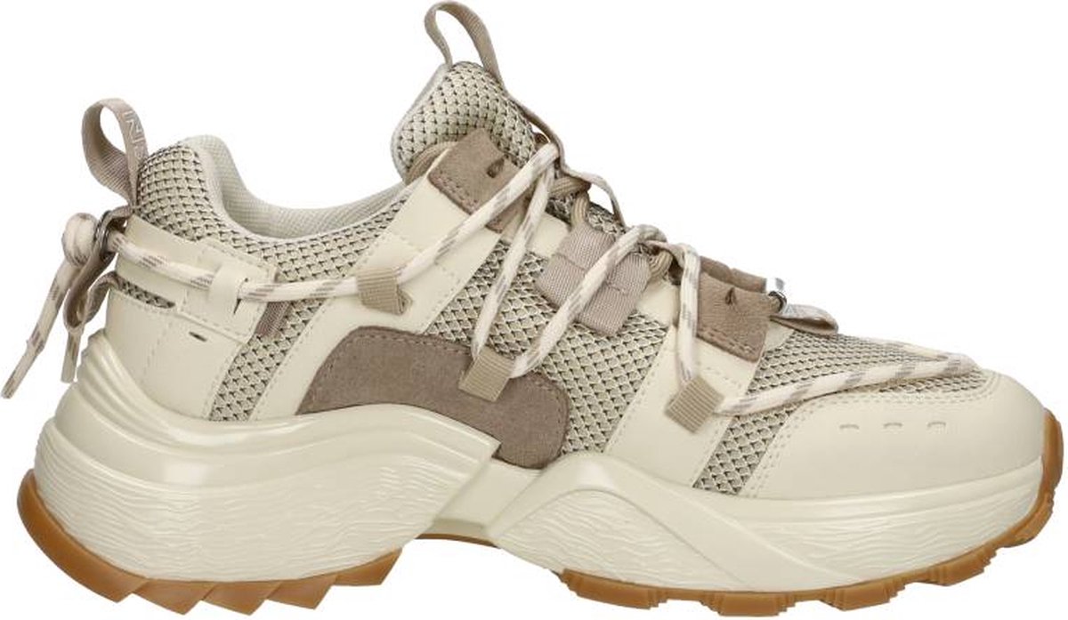 Stap in stijl met de TAZMANIA lage sneakers van STEVE MADDEN. Deze trendy schoenen zijn perfect voor dames die op zoek zijn naar comfort en fashion in één. De buitenkant van de schoen is gemaakt van mesh en heeft toffe overlays van bruin suéde en wit leer. Opvallende details aan de schoen zijn, de wit met bruine veter die rondom de schoen verweven is, de aantreklussen met het merklogo op de hiel en tong, de grote veterlussen, en het metalen veterplaatje. De binnenvoering is gemaakt van textiel en heeft een uitneembaar voetbed. Door de gewatteerde enkelkraag en het dempende voetbed biedt dit ultiem loopcomfort. De rubberen chuncky zool heeft een gripvast profiel waardoor je heel de dag heerlijk kunt wandelen. Combineer deze sneakers met een stoere jeans voor een casual look, of draag ze onder een jurkje voor een trendy twist. Of je nu gaat shoppen met vriendinnen of een dagje naar het park gaat, met de TAZMANIA sneakers ben je altijd on-trend.