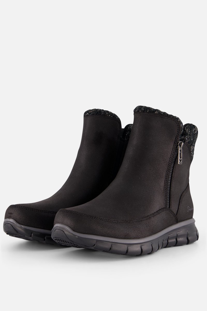 Specificaties: Pasvorm: normale pasvorm; ritssluiting aan de zijkant Bovenwerk: vegan leer; met 3M Scotchgard behandeld voor weerstand tegen water en vlekken Voering: warme voering Demping: Warm Tech Memory Foam binnenzool voor zachte demping Buitenzool: rubberen buitenzool Kleur: zwart Materiaal: synthetisch materiaal - textiel - rubber lees meer over dit product