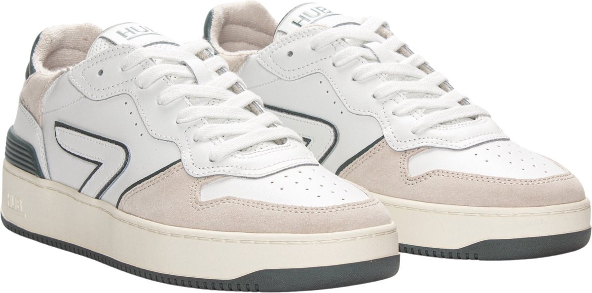 Specificaties: Pasvorm: normale pasvorm; vetersluiting Bovenwerk: leer met suède Demping: HUB-binnenzool met gel-padding zorgt voor comfort en optimale demping Buitenzool: rubberen buitenzool Kleur: wit - groen Materiaal: leer - suède - textiel - rubber lees meer over dit product