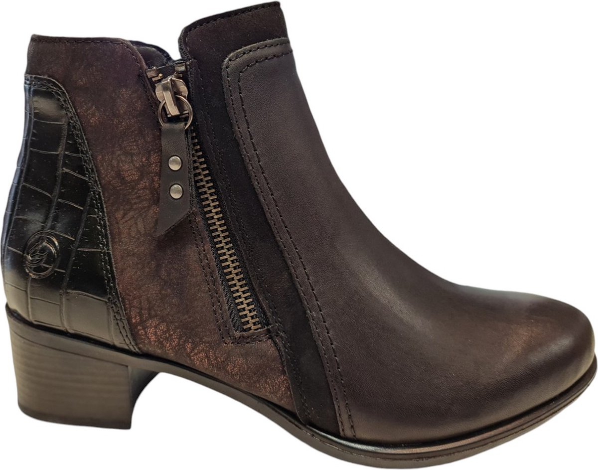 Ontdek de stijlvolle en comfortabele Remonte Dames Enkellaarzen in een chique zwart met bronzen kleurencombinatie. Deze laarzen zijn vervaardigd van hoogwaardig leer voor een luxe uitstraling en duurzaamheid. Het uitneembare voetbed biedt optimaal comfort en ondersteuning, terwijl de dubbele ritssluiting het aan- en uittrekken vergemakkelijkt. De Remonte Dames Enkellaarzen zijn de perfecte keuze voor de modebewuste vrouw die op zoek is naar een combinatie van stijl en comfort. Maak je garderobe compleet met deze veelzijdige laarzen die je met gemak van dag tot avond kunt dragen