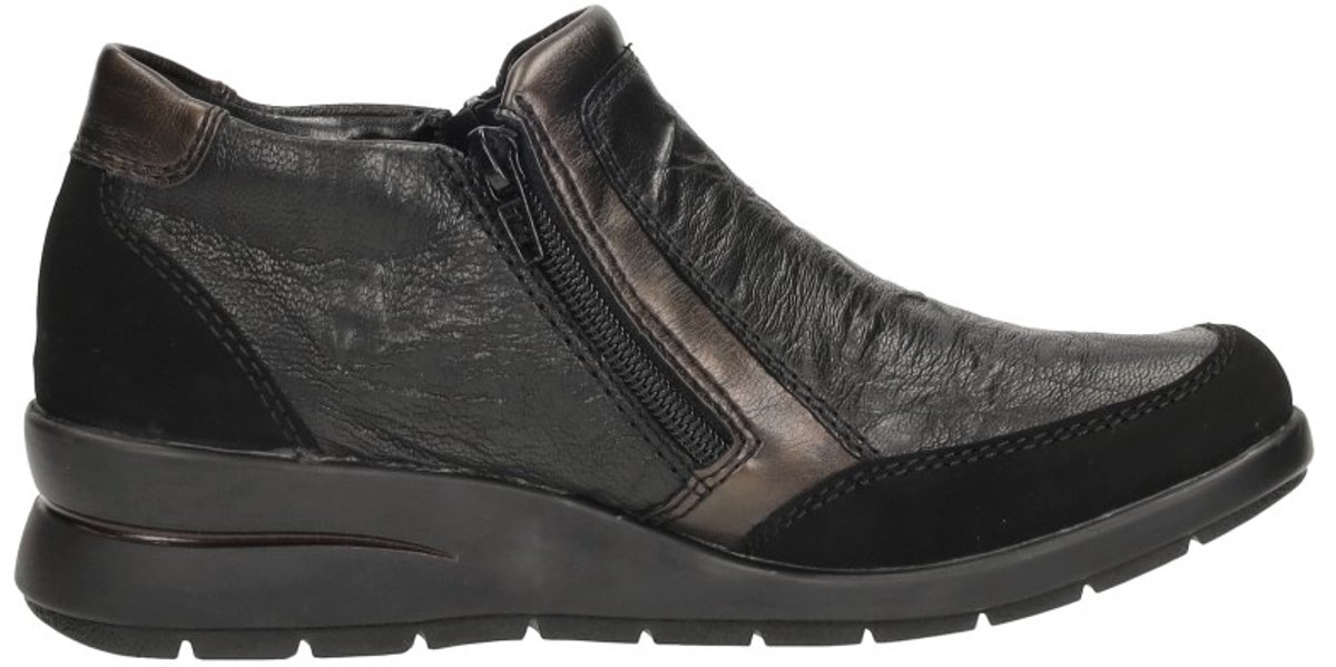 Ervaar het comfort van deze Rieker damesboot. De zwarte instapper heeft twee ritsen voor een makkelijke instap.