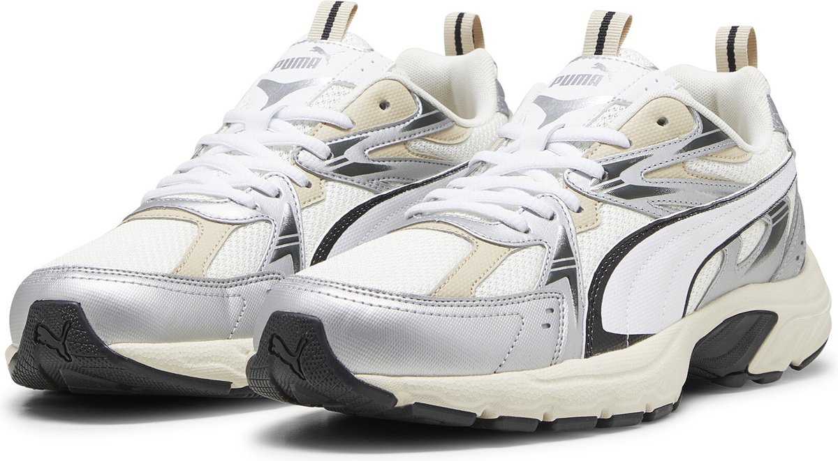 PRODUCTVERHAAL De Milenio Tech haalt inspiratie uit de geliefde hardlopers van rond de eeuwwisseling, met stijlvolle accenten uit de jaren 2000. Frisse mesh gaat samen met felle metallic tinten voor een schoen die er goed uit ziet én geweldig zit. ALLE INS EN OUTS SOFTFOAM+: comfortabele instap-inlegzool voor zachte demping dankzij de extra dikke hiel DETAILS Bovenwerk van air mesh IMEVA-tussenzool Rubberen zool PUMA F... lees meer over dit product