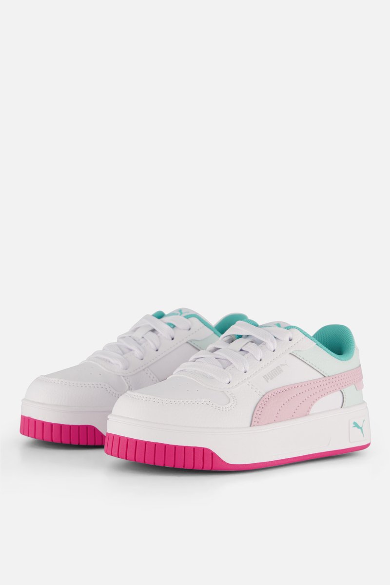 Deze sportieve en stijlvolle Puma Carina Street sneakers hebben een bovenwerk 20% gerecycled synthetisch materiaal. De voering en uitneembare binnenzool zijn gemaakt van textiel en voorzien van een softfoam inlegzool. De sneakers zijn voorzien van een comfortabele instap en zachte demping.