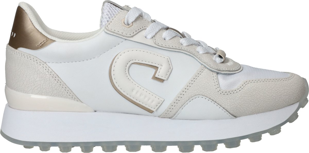 Sportieve Cruyff Park Runner sneaker voor dames. De witte sneaker heeft beige vlakken en een gave transparante zool.