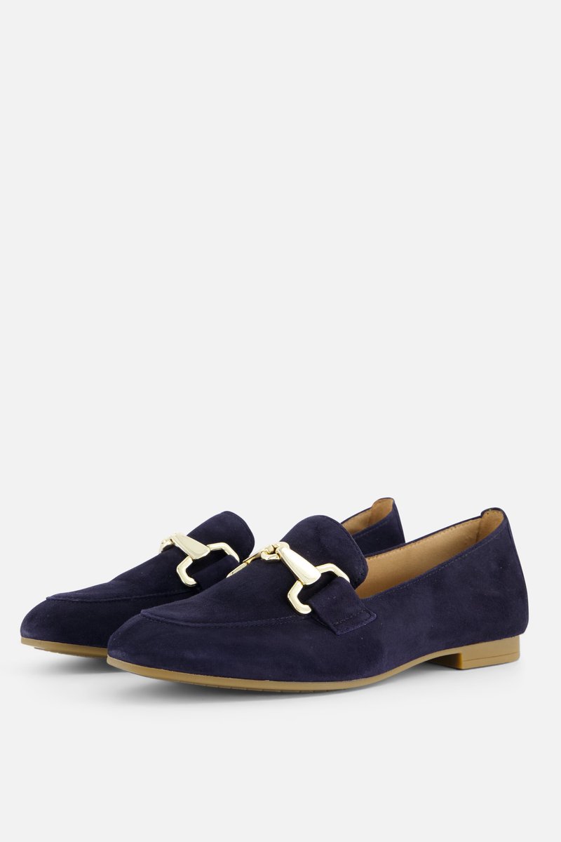 Deze zwarte loafer 211 met goudkleurige wreefband en smallere F-wijdte komt uit de collectie van het merk Gabor. Dit model zorgt ervoor dat jij de dag comfortabel doorkomt dankzij het suède bovenwerk en het vaste leren voetbed met dempende werking om de gewrichten te ontzien. Het binnenwerk heeft een voering van zacht textiel op de voorvoet en suèdelook textiel langs de zijkant van de voet. De bruine rubberen zool is uitzonderlijk flexibel en heeft een golvend profiel in de loopzool en een laag hakje van bijna 2 centimeter hoog. Creëer eenvoudig een stijlvolle look onder iedere outfit met deze comfortabele schoen!