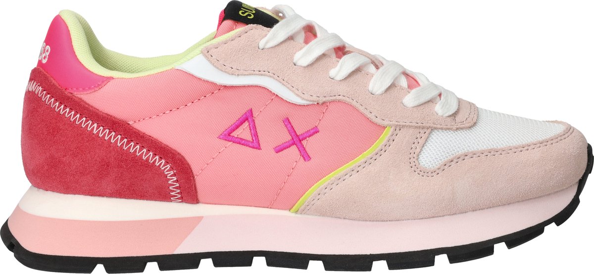 Ontdek de levendige flair van de ALLY COLOR EXPLOSION sneakers van SUN68. Deze lage sneakers met ronde neus zijn perfect voor dames die houden van een speelse touch in hun lente- en zomergarderobe. Dankzij het uitneembare voetbed en de katoenen binnenkant geniet je van optimaal comfort tijdens een ontspannen stadswandeling of een picknick in het park. De rubberen zool en vetersluiting zorgen voor een stevige pasvorm. Combineer ze moeiteloos met een luchtige zomerjurk of een casual short voor een frisse, modieuze look. Laat je inspireren door de roze tinten en voeg een kleurrijke twist toe aan je outfit.