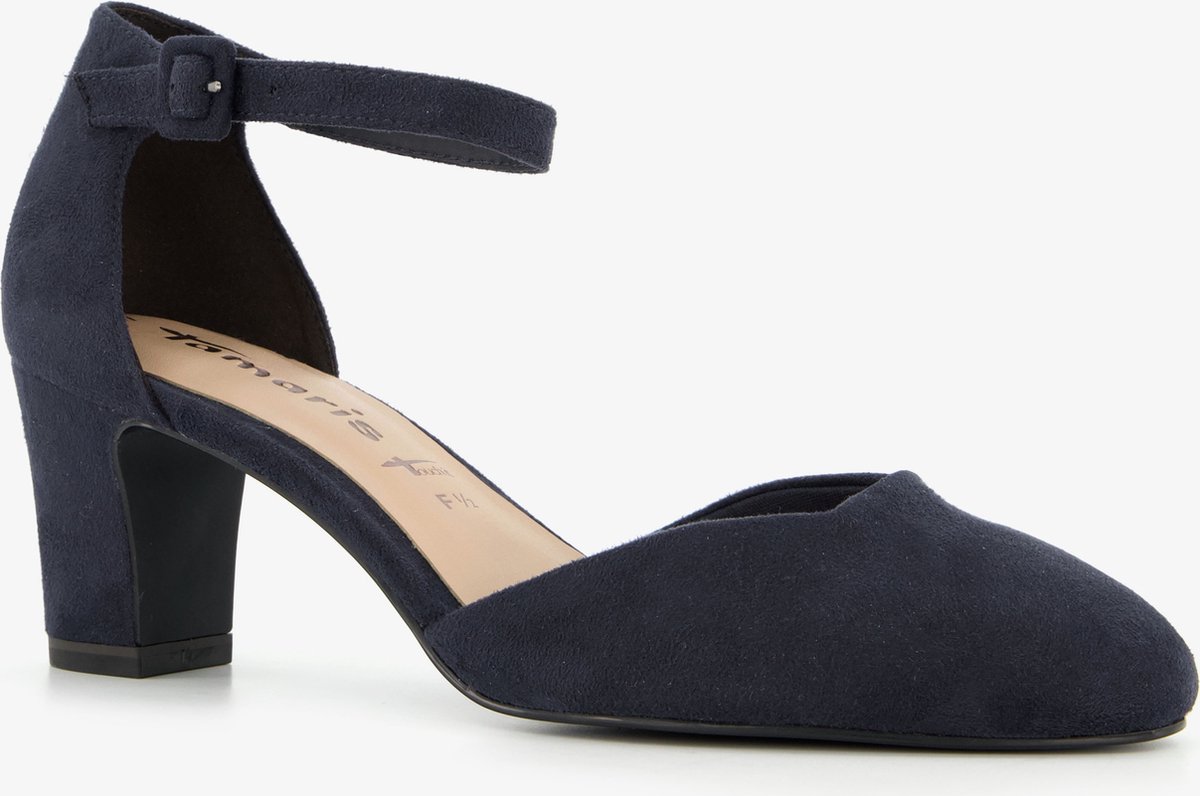 Blauwe dames pumps uit de Tamaris collectie. Gemaakt van imitatieleer met een binnenwerk van textiel. Voorzien van een gespsluiting en een gesloten hiel. De pumps hebben een blokhak van circa 6 cm. Binnenzool is niet uitneembaar. ¶¶