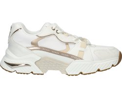 Stap in stijl met de CARRLI lage sneakers van GUESS. Deze witte sneakers met chunky zool zijn perfect voor een casual dagje uit of een relaxte wandeling in de stad. Het bovenwerk is ook voorzien van wit suèdelook, goudkleurig leatherlook en beige textieltape. De grove zool in diverse stukken en vormen zorgen voor een stoere touch. Combineer de sneakers met een jeans en een oversized T-shirt voor een moeiteloze en fashionable look. De textiel voering zorgt voor comfort tijdens het dragen. Met de CARRLI sneakers ben je helemaal on-trend!