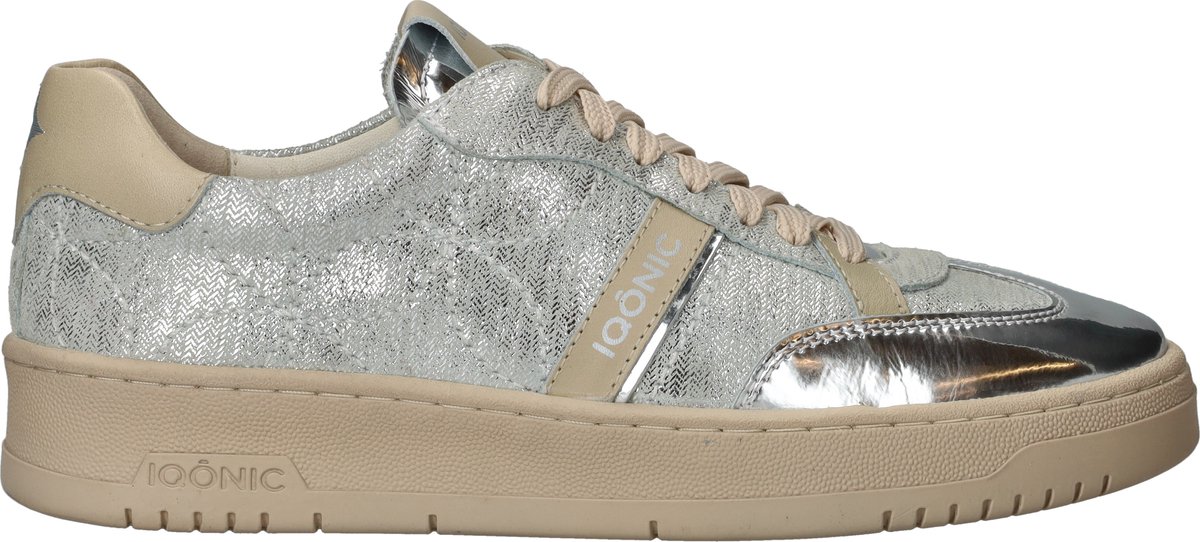 Straal in deze mooie damessneaker van IQÔNIC! De sneaker is zilver van kleur en heeft beige accenten.
