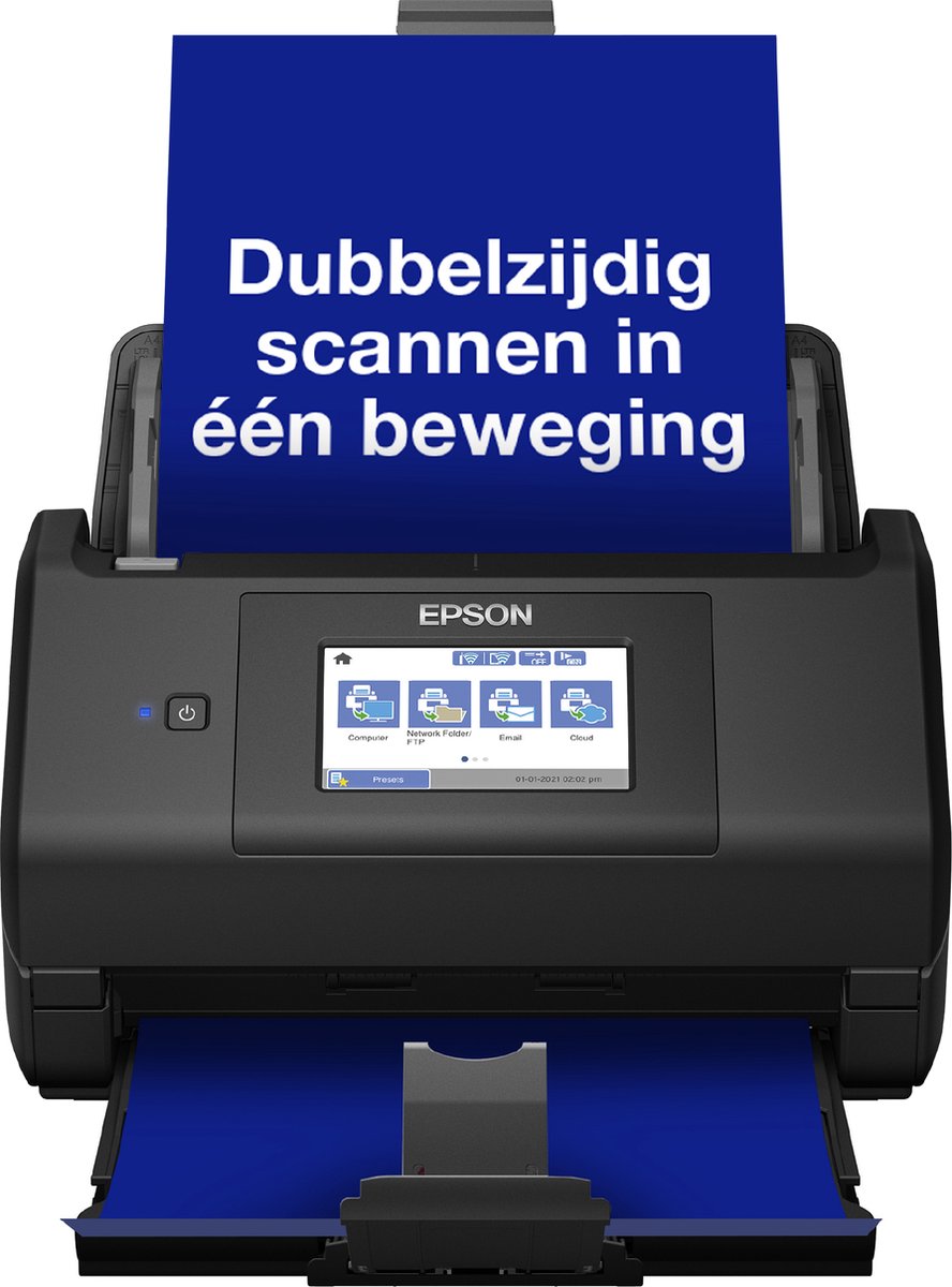 Houd uw bedrijf op orde met de Epson Workforce ES-580W, een supersnelle, auto-duplex A4-scanner met automatische documentinvoer en een touchscreen van 10,9 cm en directe scanfuncties. Dankzij het grote scherm van 10,9 cm en Wi-Fi kunt u uw documenten direct op de juiste plek opslaan. Werk snel en slim met aanpasbare voorinstellingen.