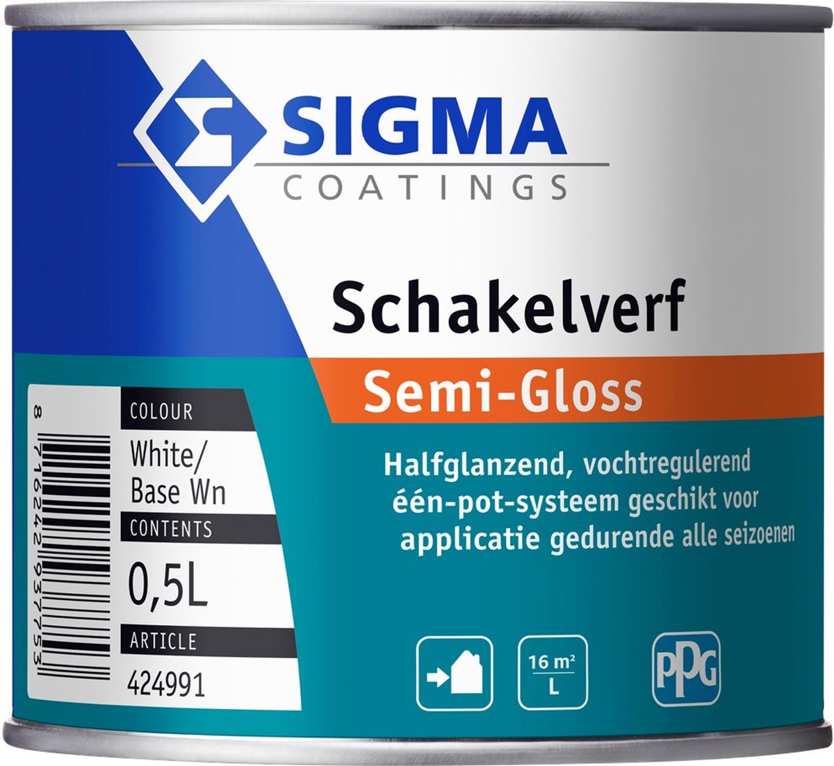 Sigma Schakelverf Semi-Gloss kopen? Sigma Schakelverf Semi-Gloss is de halfglanzende kwaliteit in het Sigma Schakelverf assortiment. Dit volwaardige een-pot systeem is een uitstekende keuze voor renovatieschilderwerk en gebruik in een meerjarensysteem. Schilders gebruiken Schakelverf Semi-Gloss daarnaast ook wel als afwerklaag van geveltimmerwerk dat is gegrond met Sigma Amarol Primer. Sigma Schakelverf Semi-Gloss is een glan... lees meer over dit product