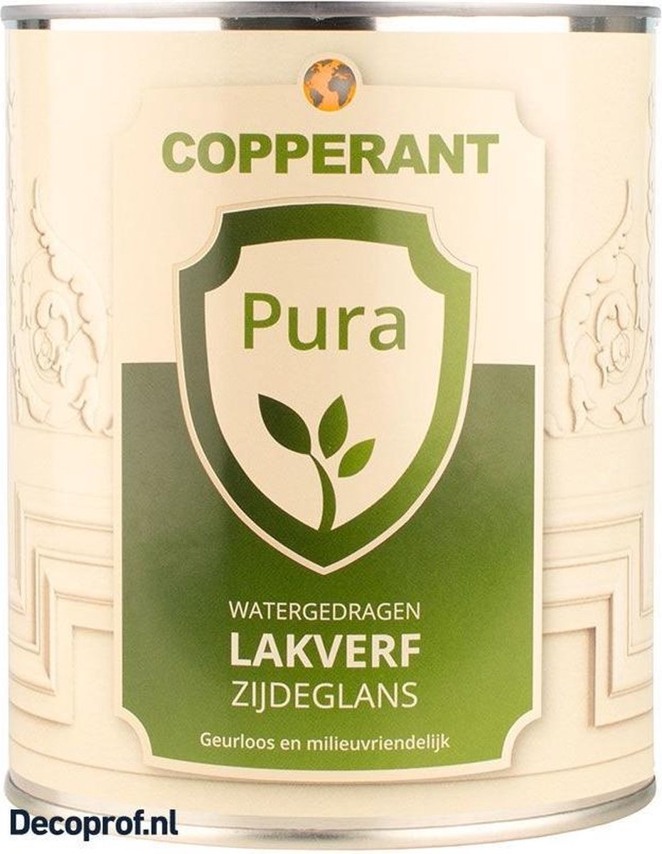 Dekkende zijdeglans lakverf op basis van water, plantaardig bindmiddel en natuurlijke grondstoffen. Geschikt voor verschillende ondergronden (binnen en buiten) in combinatie met Pura Multiprimer. Samen zorgen ze voor een langdurige bescherming (tot 7 jaar onderhoudsarm). De lak is kras- en stootvast en behoudt elasticiteit waardoor de kans op barsten of bladderen minimaal is. Pura Lakverf zijdeglans heeft een prettige verwerking, een optimale dekking met mooie vloei en een langdurig behoud van originele kleur en glans. Bovendien is deze zijdeglans lakverf huidvetbestendig. Copperant Pura Lakverf Zijdeglans bestellen? Bij ons bestelt u nu de Copperant Pura Lakverf Zijdeglans zeer snel en voordelig! Wij leveren in 0,5 l - 1 l - 2,5 l