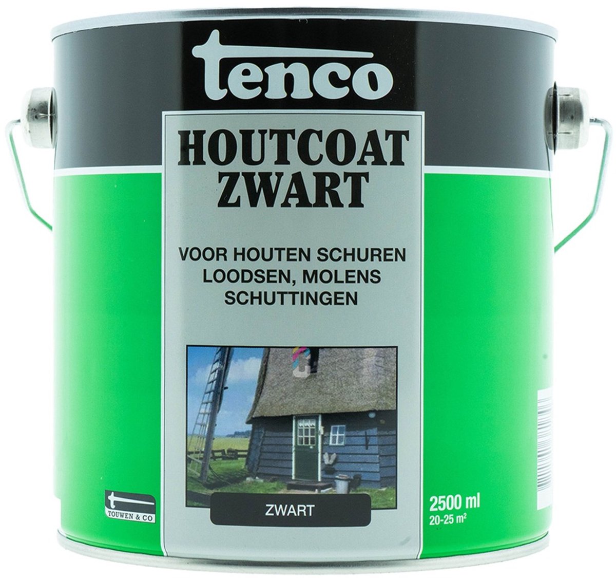 Tenco Houtcoating is een speciale, teervrije, coating voor houten objecten welke voorheen zijn behandeld met teerproducten. Op basis van alkydhars en zwarte pigmenten. Verfraait en behoudt het karakteristieke uiterlijk. Voor onder andere schuren, loodsen en schuttingen. Bestand tegen weersinvloeden.