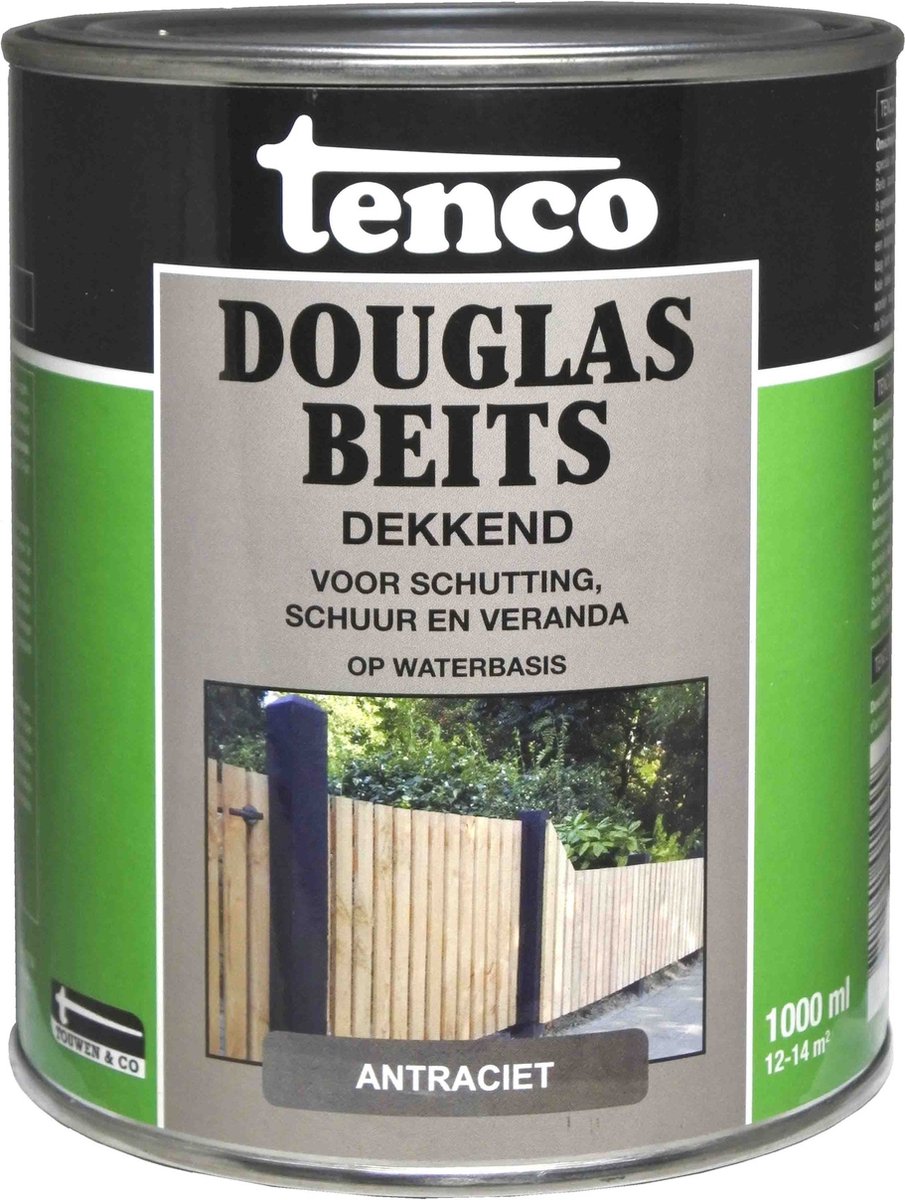 Tenco Douglas Beits dekkend is een duurzame buitenbeits op acrylbasis met water als oplosmiddel. Tenco Douglas Beits is reuk arm en minder belastend voor het milieu. Tenco Douglas Beits accentueert de houtnerf en het beschermt hout tegen weersinvloeden, het is gemakkelijk aan te brengen en sneldrogend.
